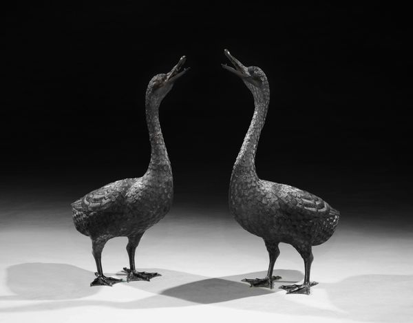 A PAIR OF JAPANESE BRONZE FIGURES OF GEESE