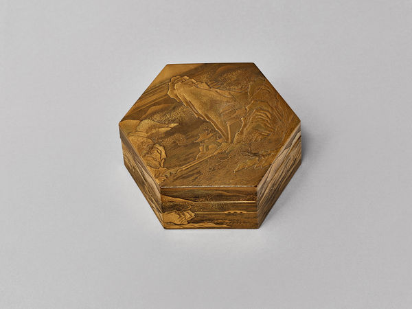 A JAPANESE HEXAGONAL GOLD LACQUER KOGO -