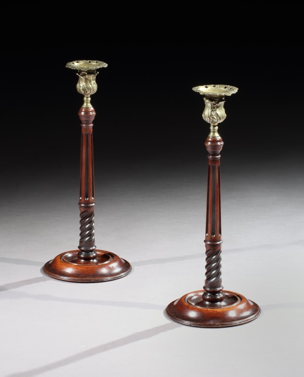 A PAIR OF GEORGE III MAHOGANY CANDLESTICKS -