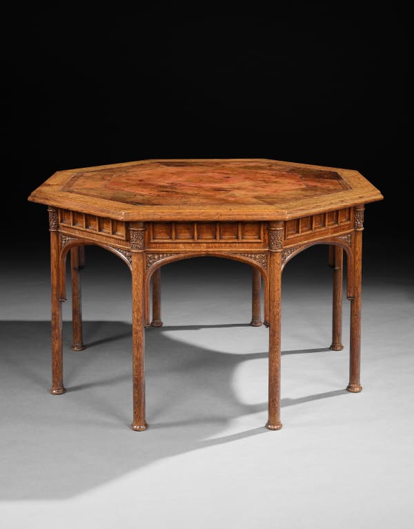 The Bridehead Library Table: A William IV Gothic revival Oak Library table -